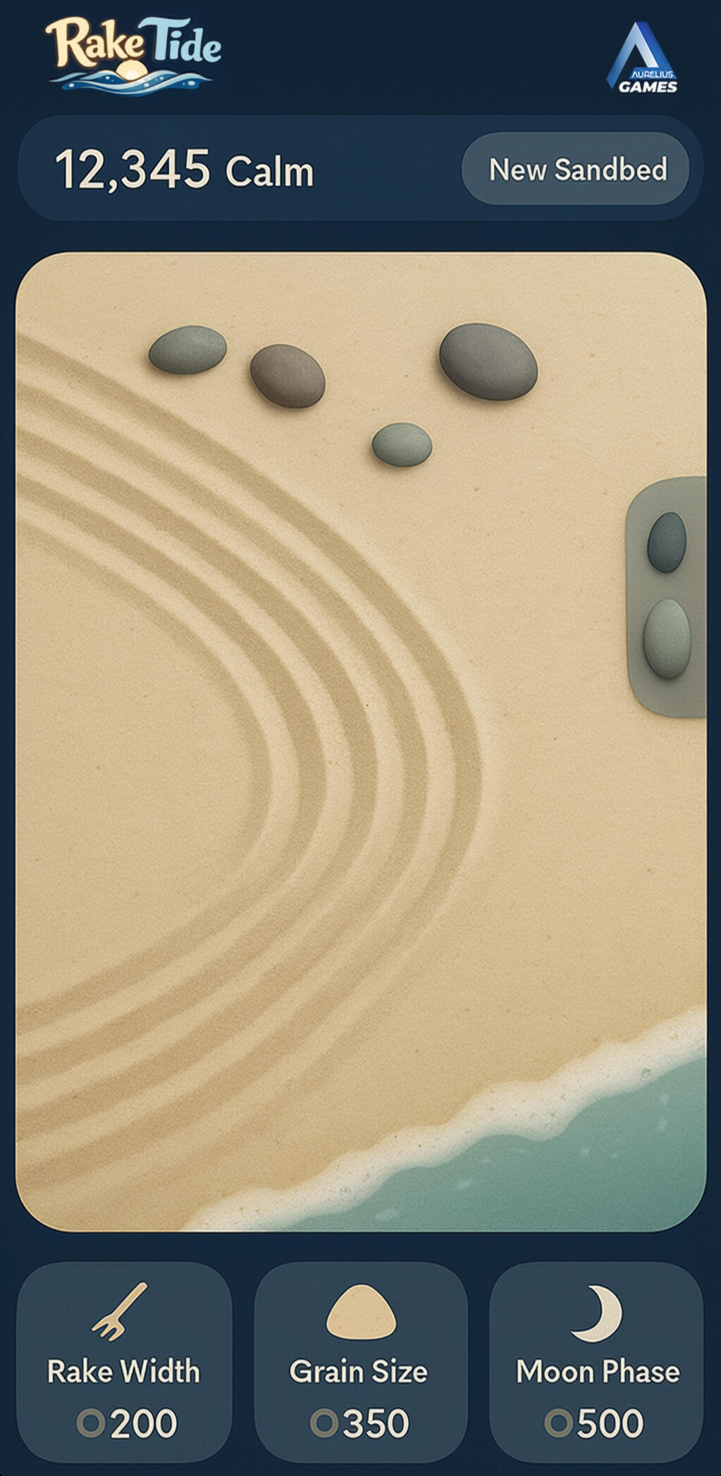 Rake Tide is a calm, idle experience about shaping sand and letting go. Drag to rake clean lines into the shoreline, place small details, and watch as the tide slowly returns to soften and erase your work—leaving only the quiet satisfaction of creating in the moment. As patterns persist, you generate Calm to gently expand your tools, refine the sand, and slow the tide, with new textures and rhythms unfolding naturally. There’s no pressure or optimization—just a steady, meditative loop of create, observe, and release.